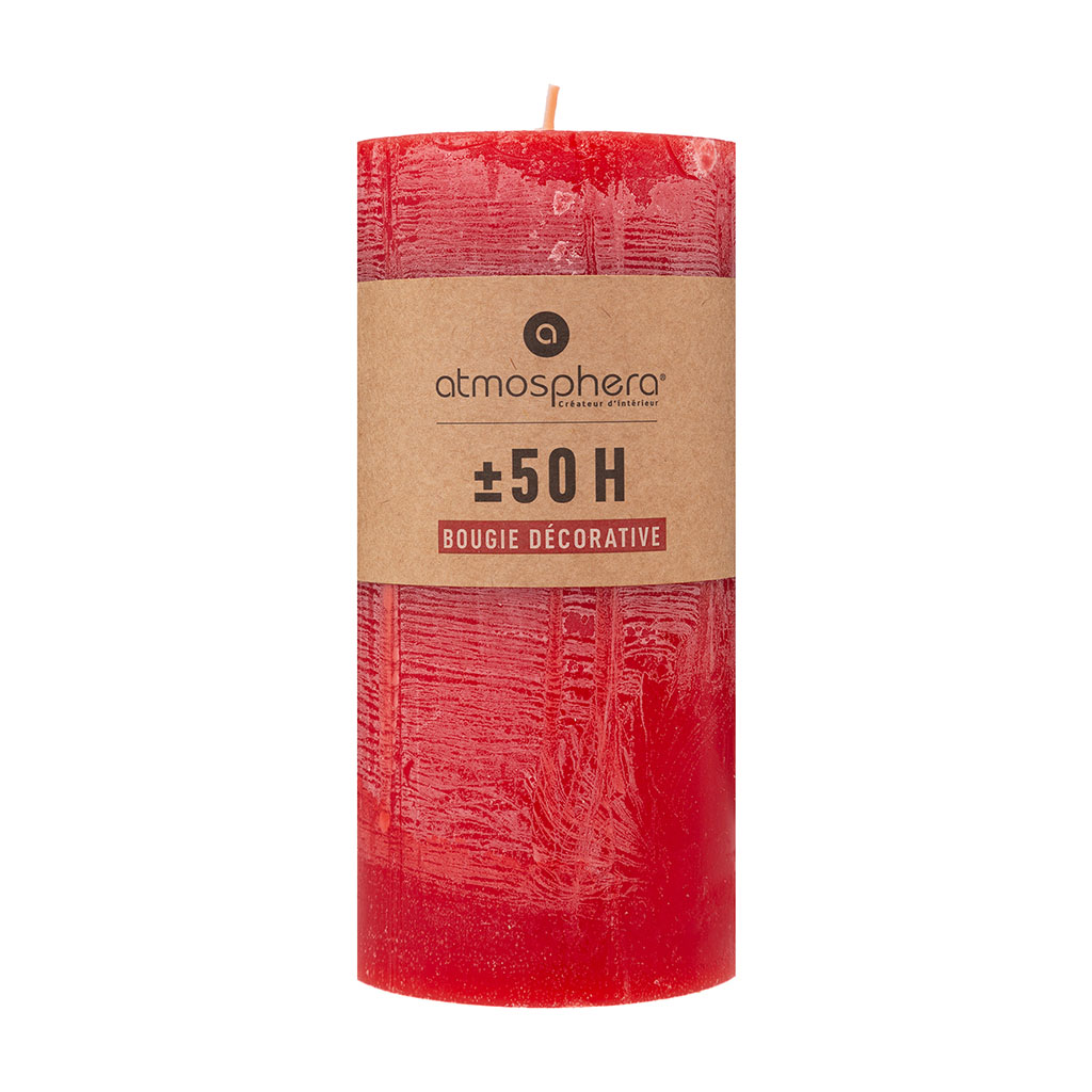 Bougie rustique cylindrique rouge 7x14cm