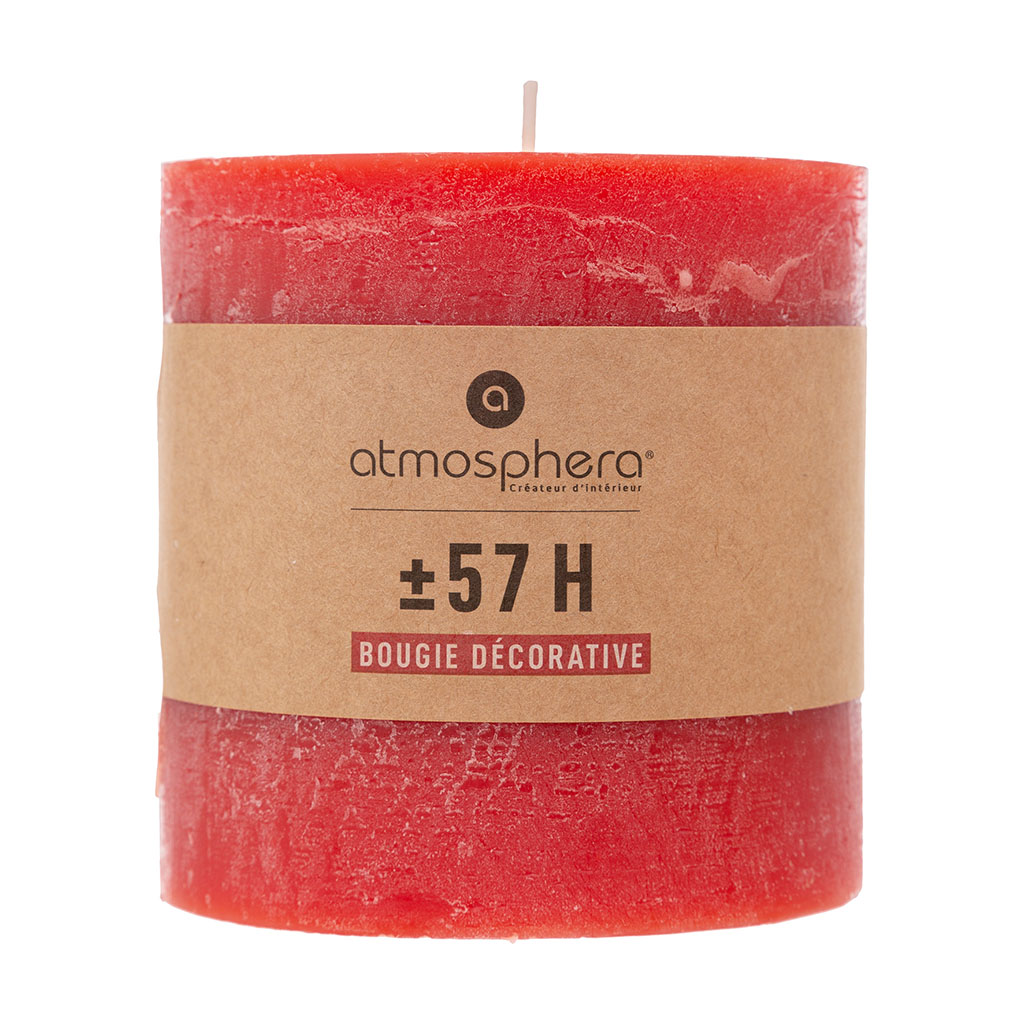 Bougie rustique ronde rouge 10x10cm