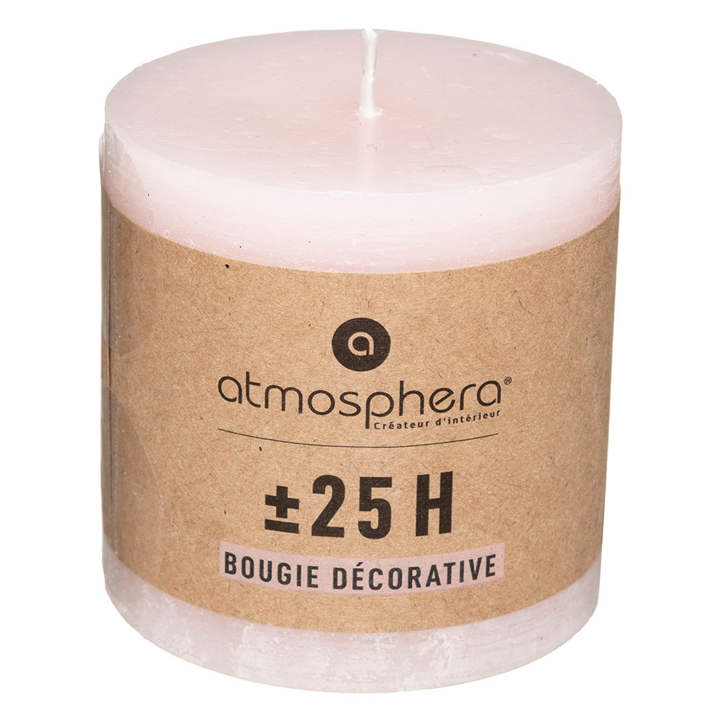 Bougie rustique ronde rose 10x10cm