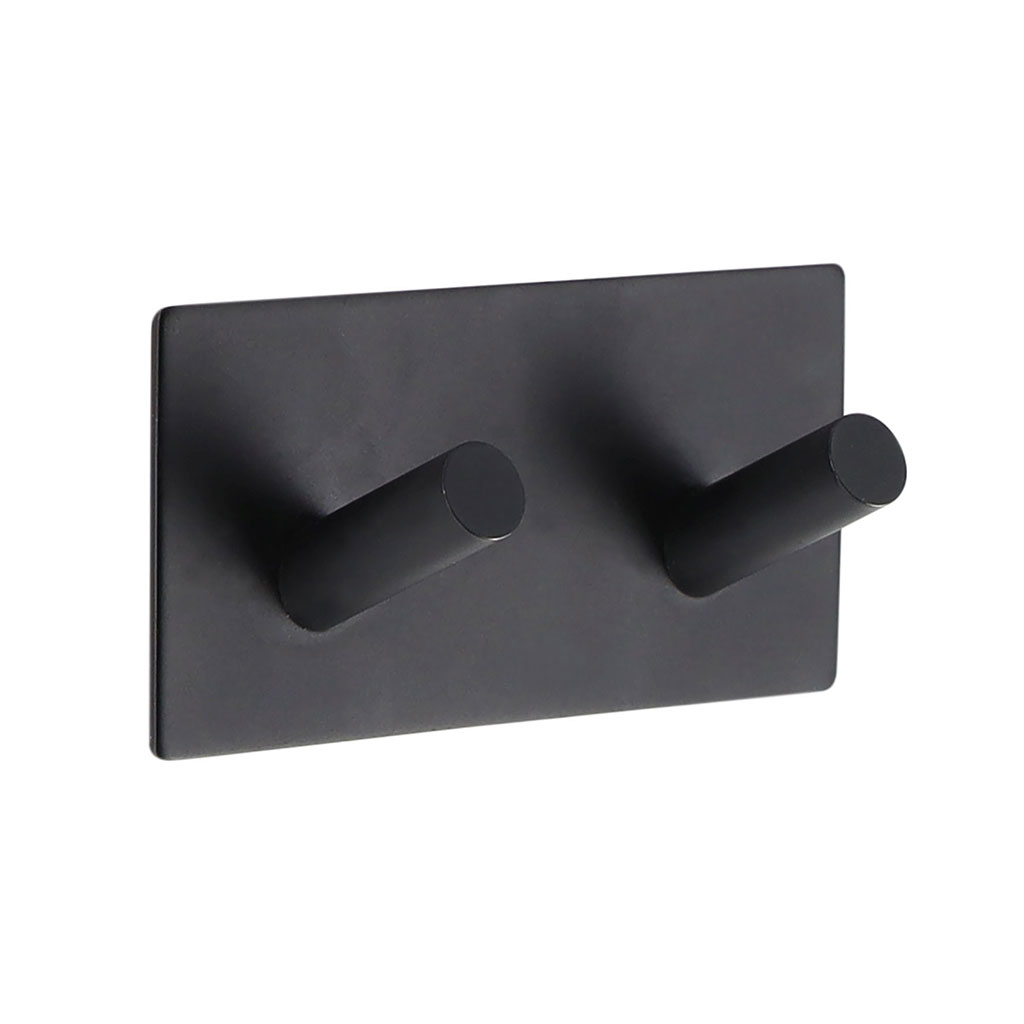 Double patère adhésive en acier noir 9x4.5x3cm
