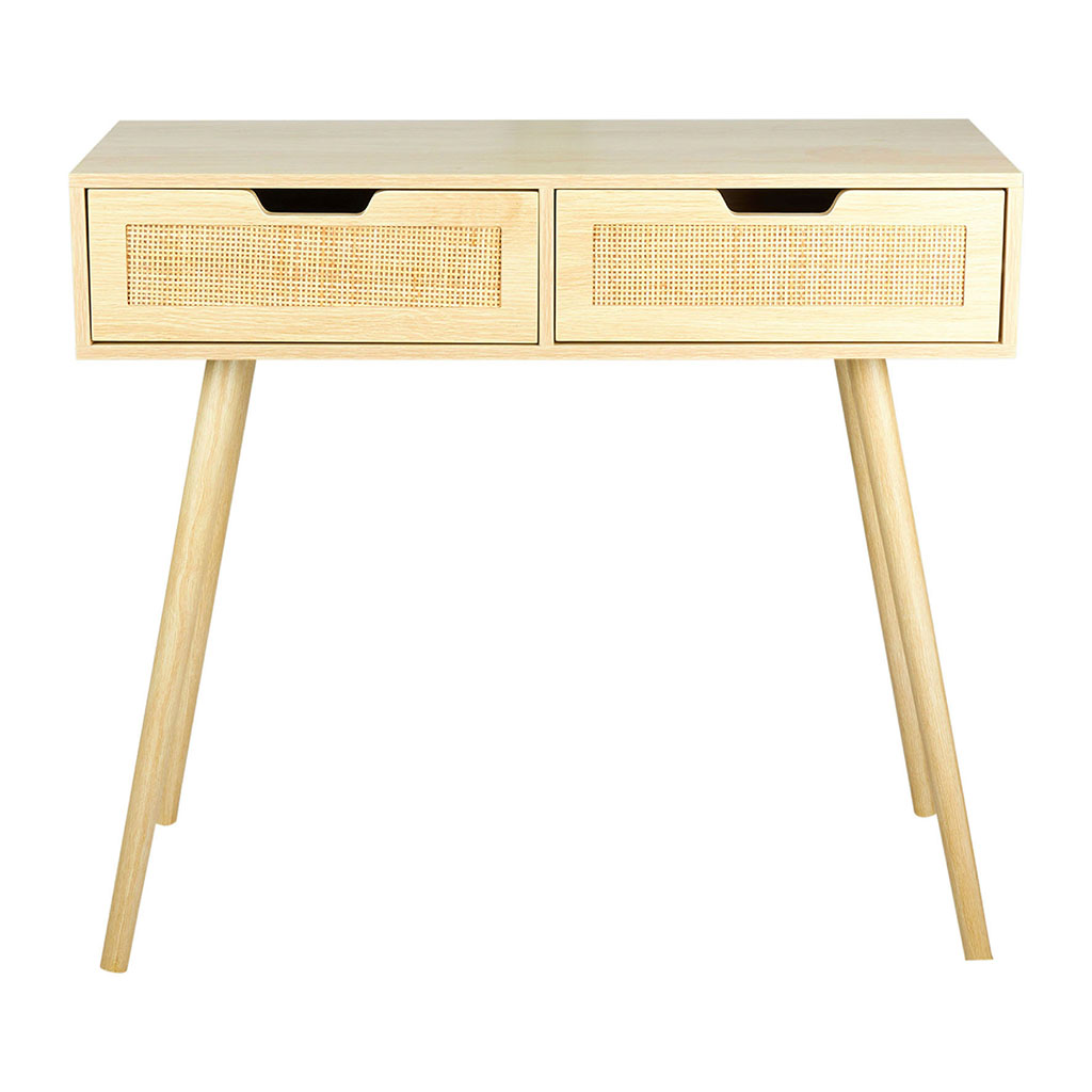 Console bois et cannage naturel 2 tiroirs 72x80cm
