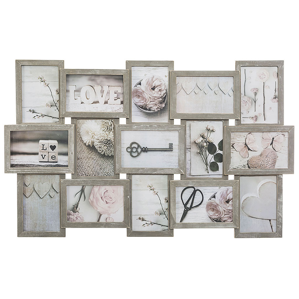 Pêle-mêle 15 photos fibres de bois gris 72.4x2.5x45cm