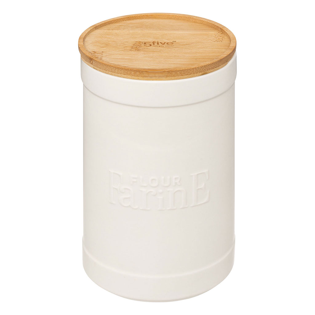 Boîte à sucre céramique blanche et bambou 12.2x19.5x12.2cm