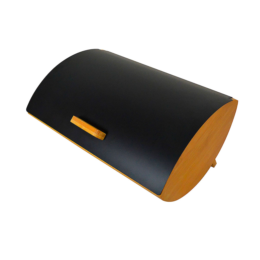 Boîte à pain métal et bambou noire 36.5x25x15cm
