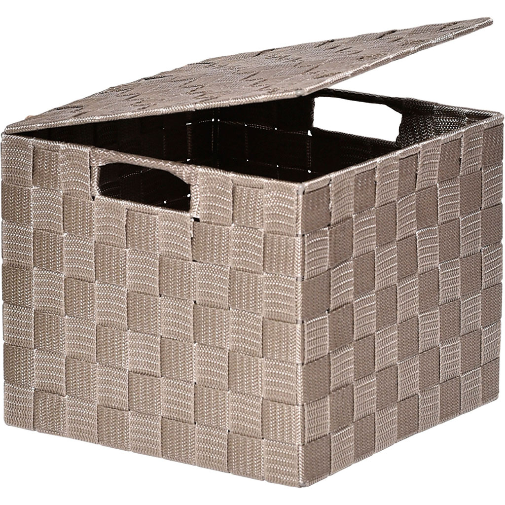 Panière de rangement carrée polyester taupe 20x10x16cm