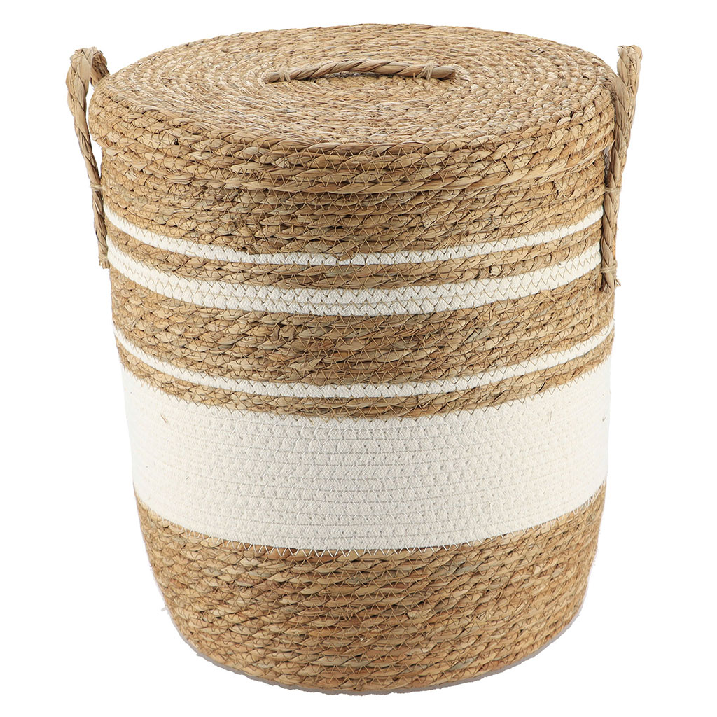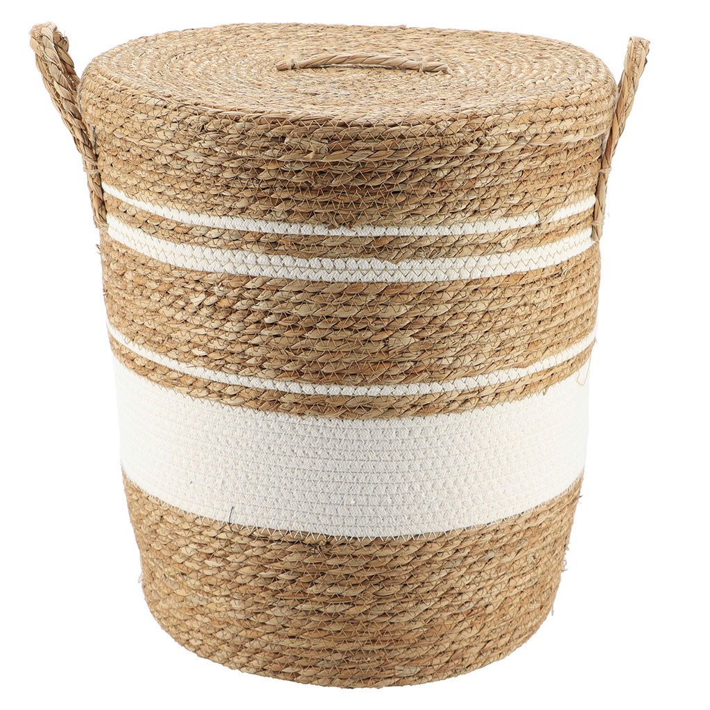 Panière linge couvercle blanc osier naturel 48x42cm