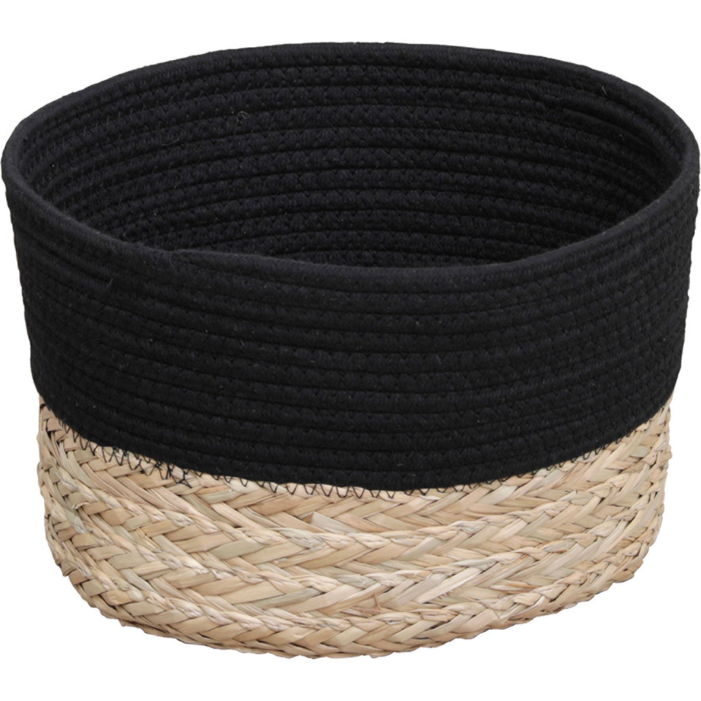 Panière ovale coton végétal noir naturel 30x17x22cm