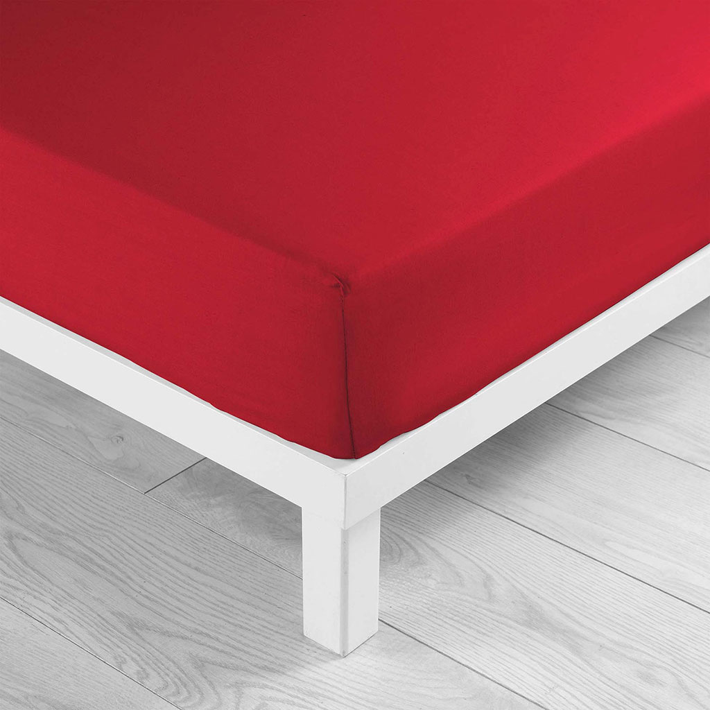 Drap housse coton 57 fils rouge 160x200cm