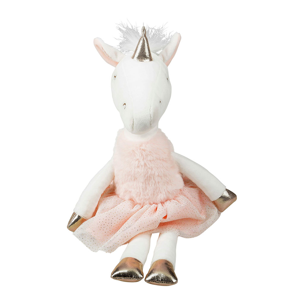 Peluche licorne blanche corne dorée H 22cm