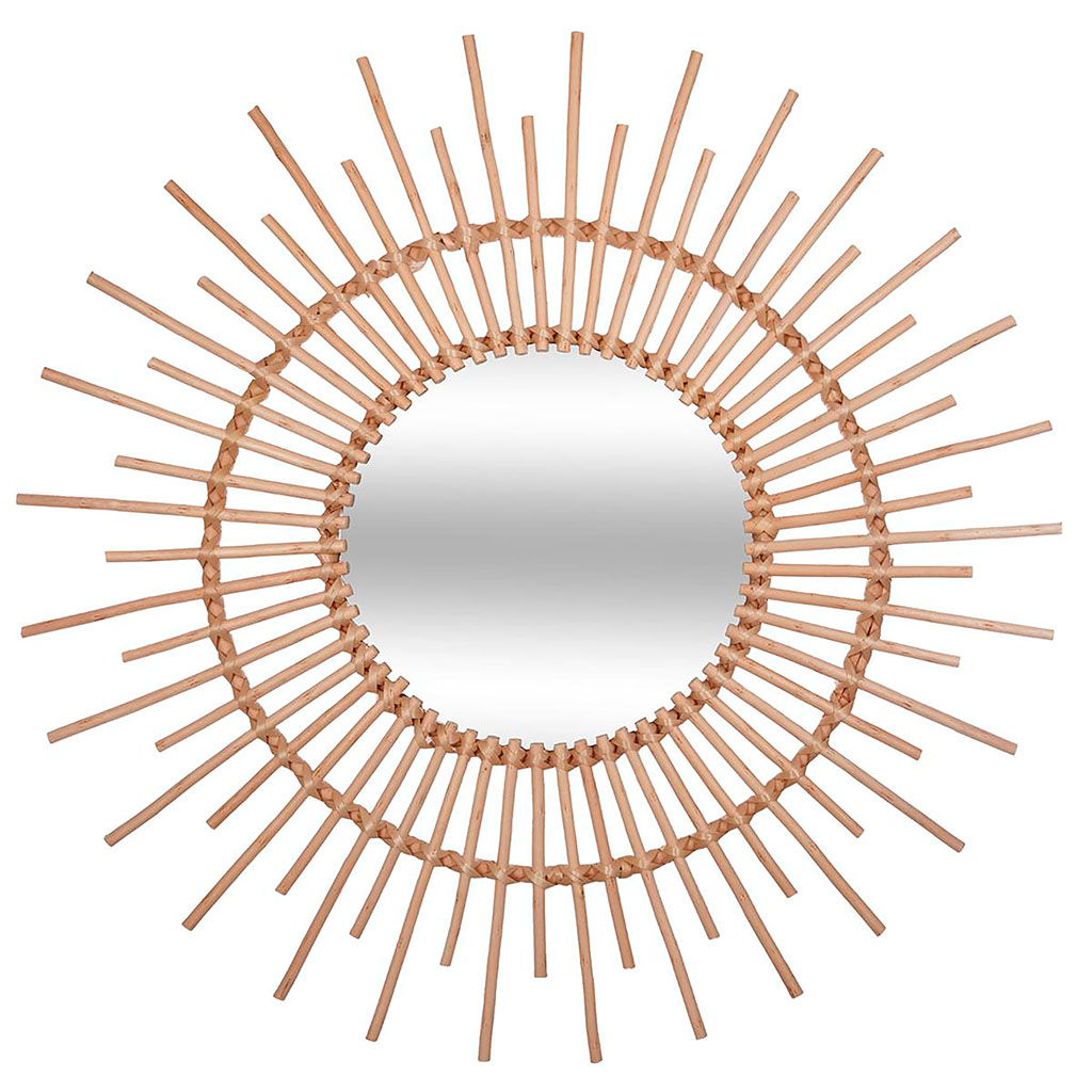 Grand miroir mural rond déco soleil rotin naturel D 76cm