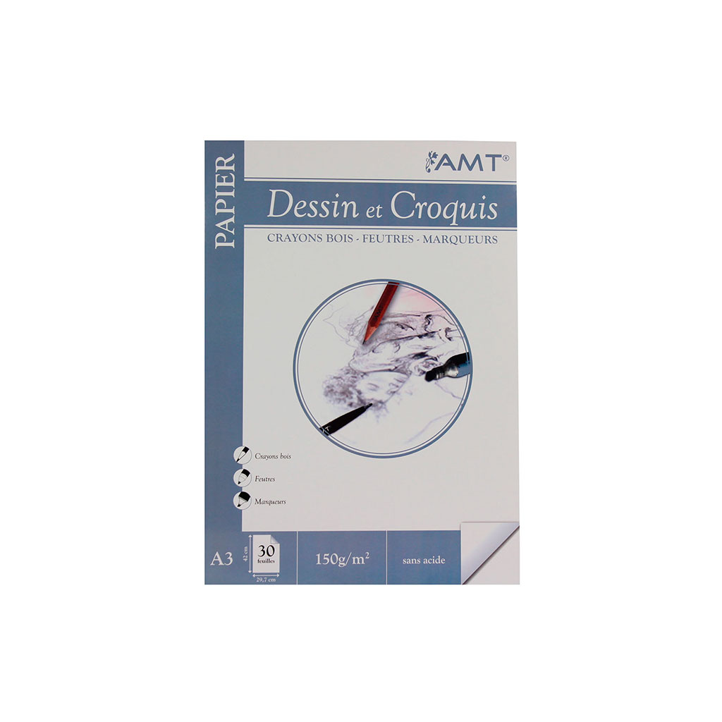 Bloc de 30 feuilles pour dessin et croquis A3 150g/m2