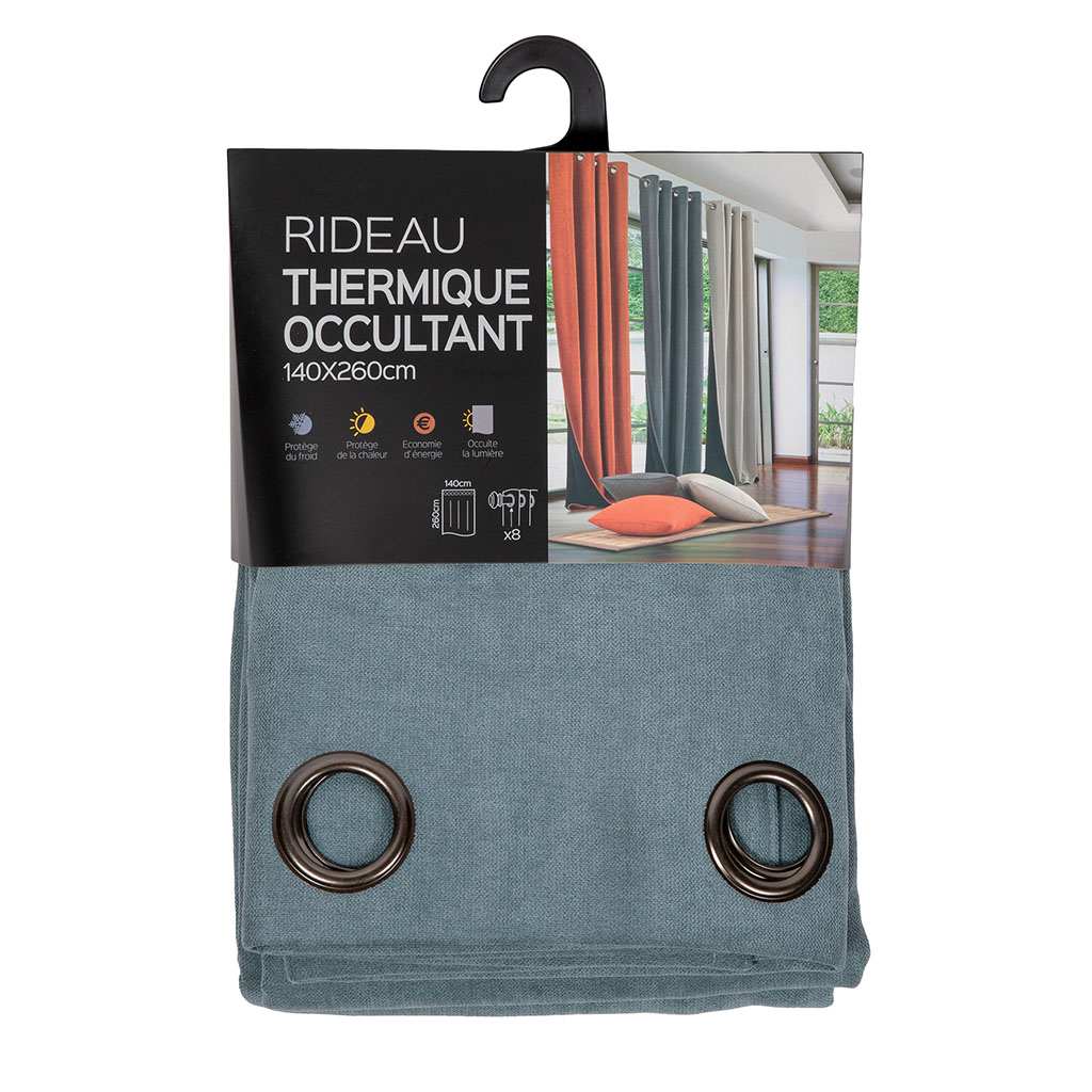 Rideau thermique occultant GASTON bleu canard 140x250cm