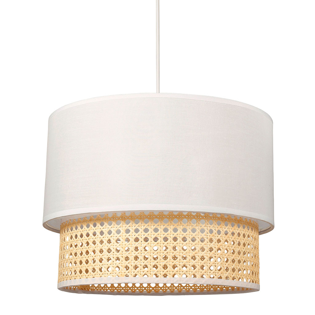Suspension double abat-jour cannage et blanc D 35x26cm