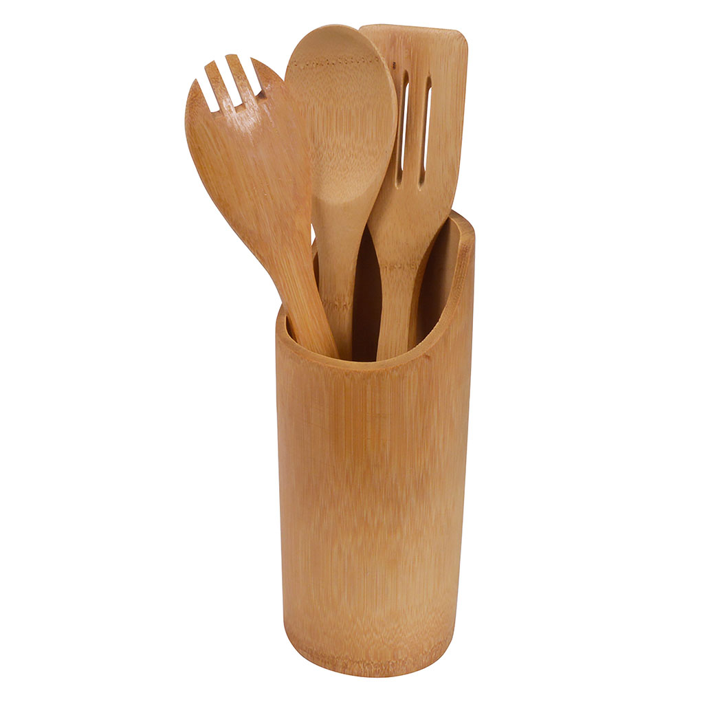 Pot et 4 ustensiles de cuisine bambou D 8x33cm