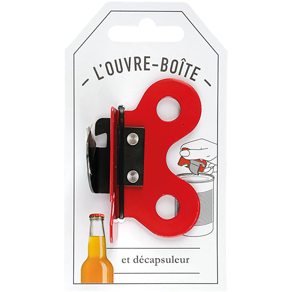 Ouvre boîte décapsuleur métal rouge
